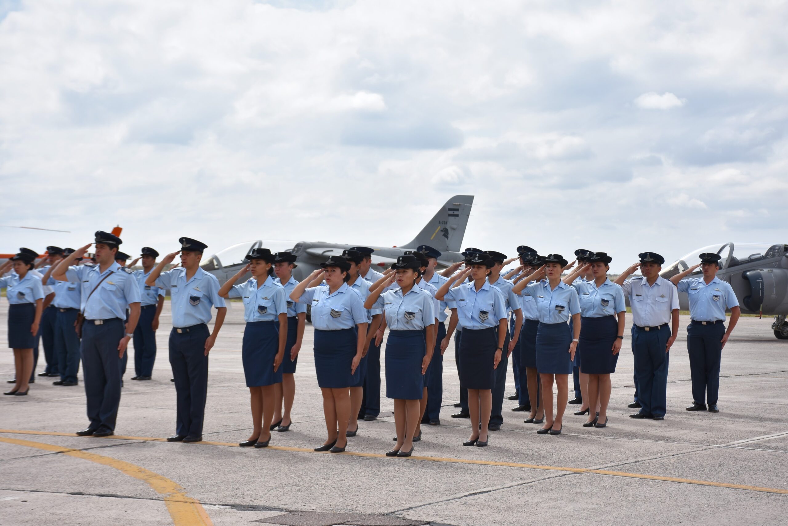 Junto al jefe del Estado Mayor General de la Fuerza Aérea Argentina, brigadier mayor Gustavo Javier Valverde, natural anfitrión de la ceremonia, se encontraban presentes el jefe del Estado Mayor Conjunto de las Fuerzas Armadas, vicealmirante Marcelo Alejandro Dalle Nogare; el jefe del Ejército Argentino, general de división Oscar Santiago Zarich; y el jefe de la Armada Argentina, vicealmirante Juan Carlos Romay, entre otras autoridades civiles y militares.