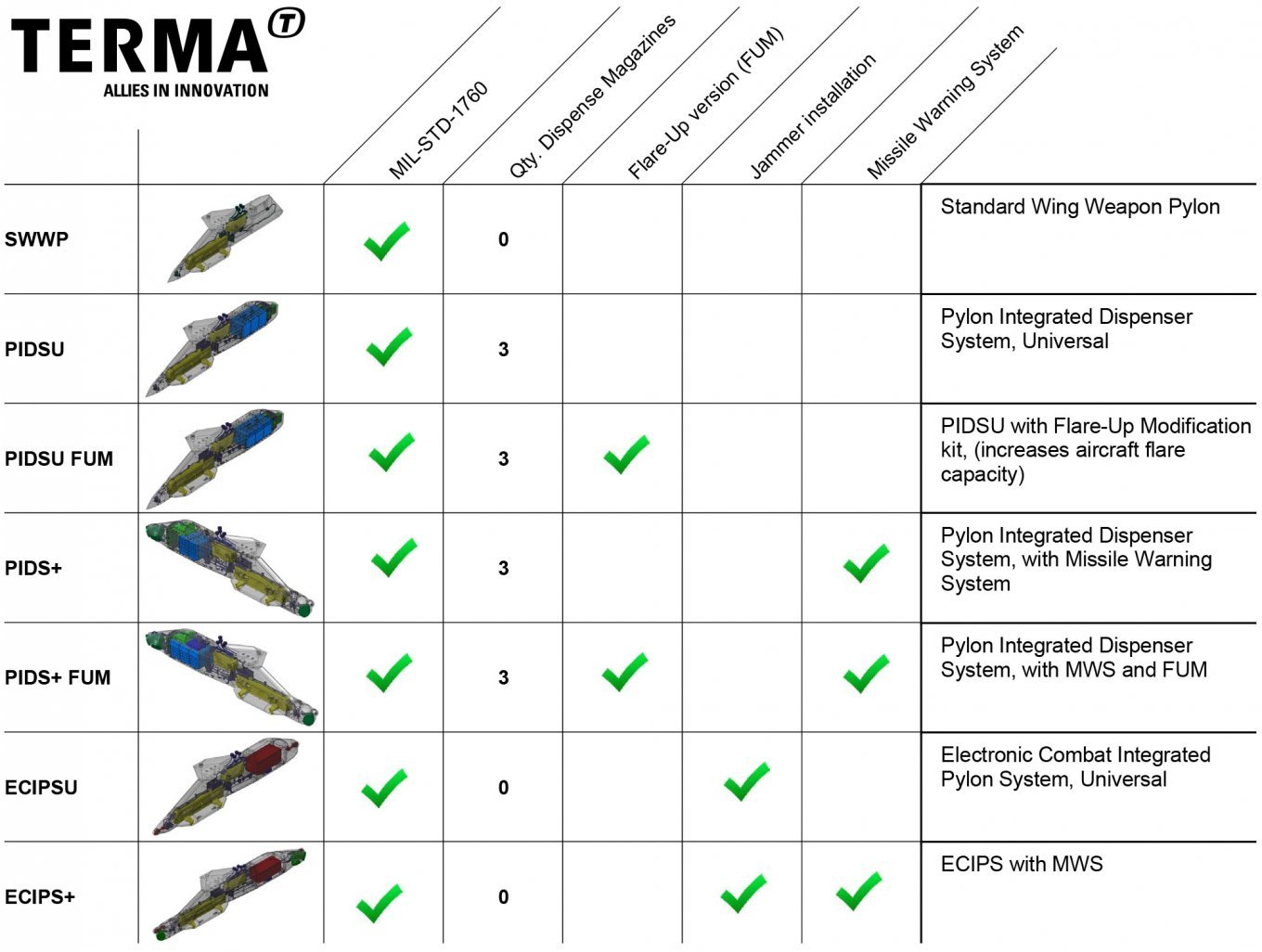 En líneas generales, los F-16 AM/BM adquiridos traen dentro en su bagaje, más de cinco tipos de pilones, entre ellos el Electronic Combat Integrated Pylon System (ECIPS) y Compact Jamming System (CJS)> ECIPS/CJS (1) desarrollados por TERMA. Estos elementos son multiplicadores de la capacidad propia de los F-16, y son utilizados por diferentes Fuerzas Aéreas europeas junto a la propia USAF. Siendo que, los nuevos PIDS+ adquiridos por nuestra Nación, además de ser los mas capaces y modernos que se hayan desarrollado hasta aquí; serán el modelo para el update que se aplicará, en los diversos pilones que ya vienen con los Viper daneses.